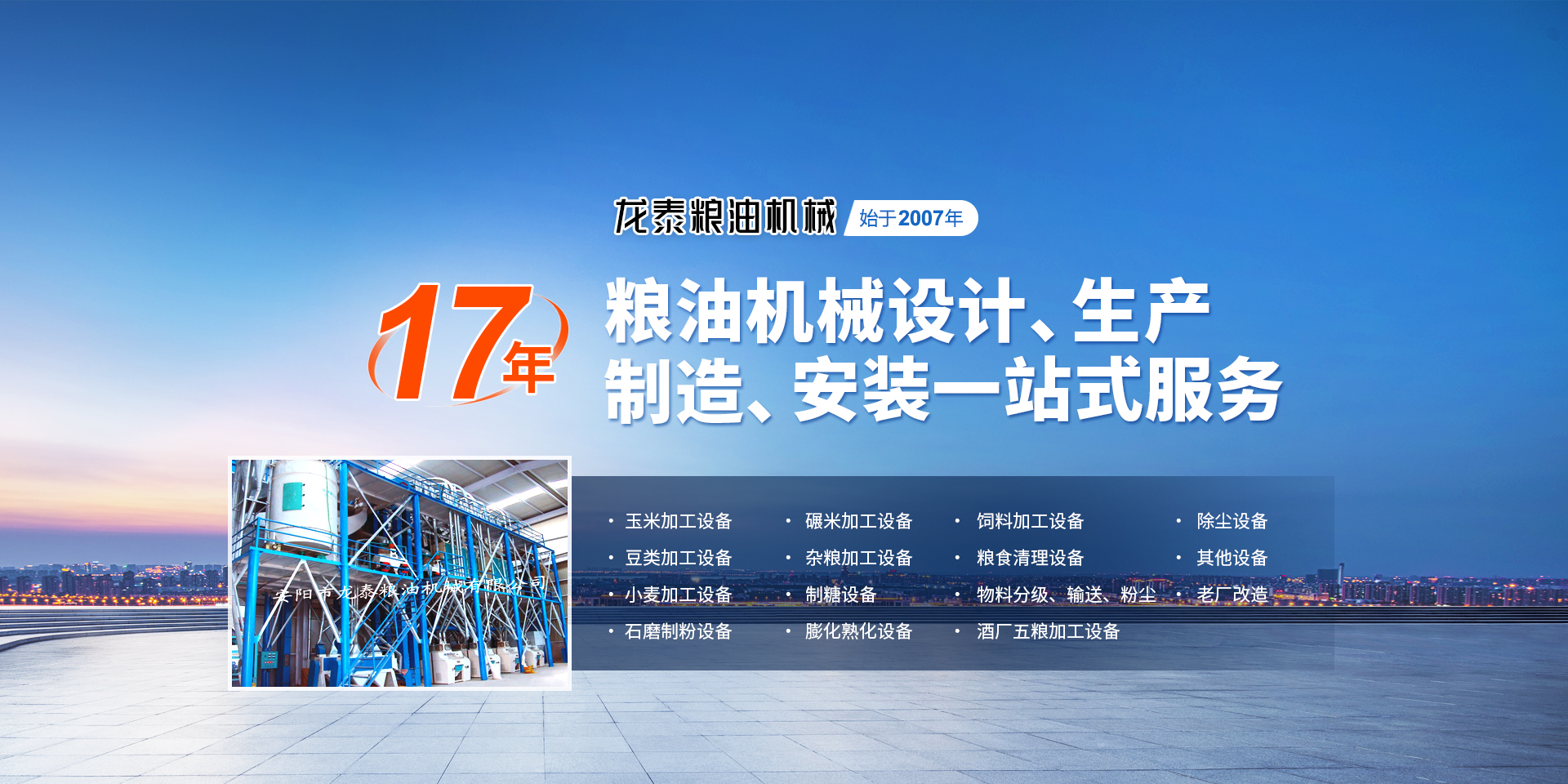 安陽市龍泰糧油機械有限公司是一個集糧油機械設計、生產制作、安裝于一體的設備制造商。公司坐落于農業生產基地河南省安陽市。多年來,公司與科研機構建立了廣泛的技術協作關系,精心致力于糧食加工設備的技術創新與應用,產品涵蓋整套碾米機械、小麥加工設備、玉米加工設備、雜糧加工設備,飼料加工及油脂設備等多個領域。可承接全套的交鑰匙工程,提供從資金預算,整體規劃,土建設計,設備制造、安裝、培訓,售后保障等一站式服務。